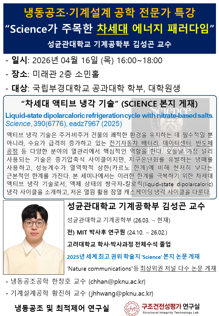 기계설계공학전공 전문가 특강 "Science가 주목한 차세대 에너지 패러다임" (장소 수정)