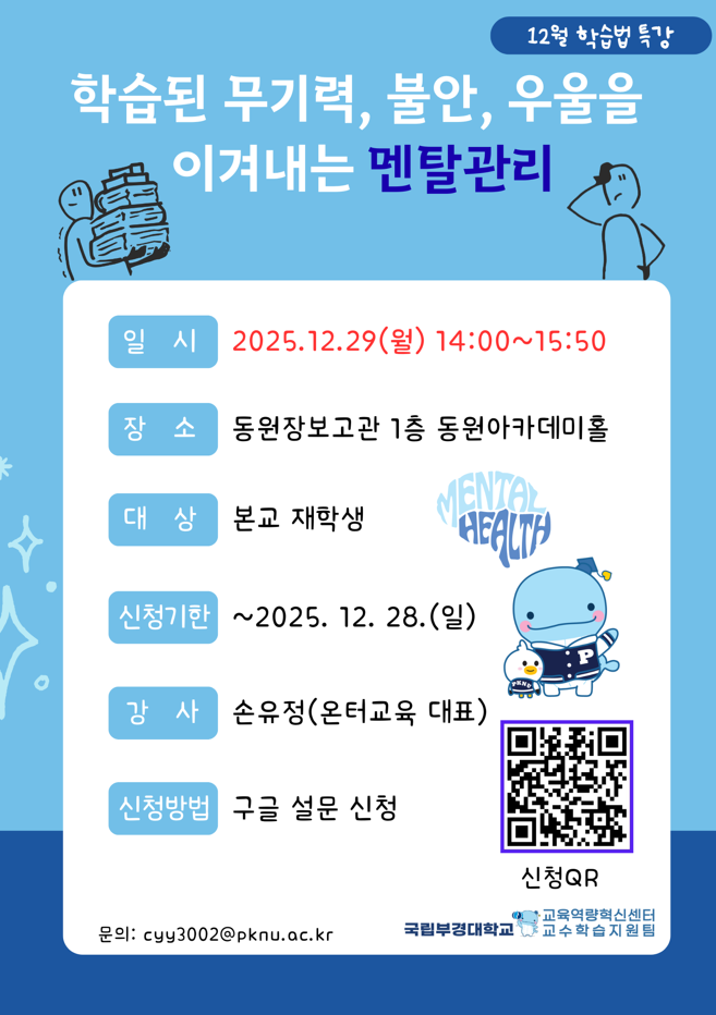 [교수학습지원팀] 2025학년도 12월 학습법 특강(대면) 실시 안내